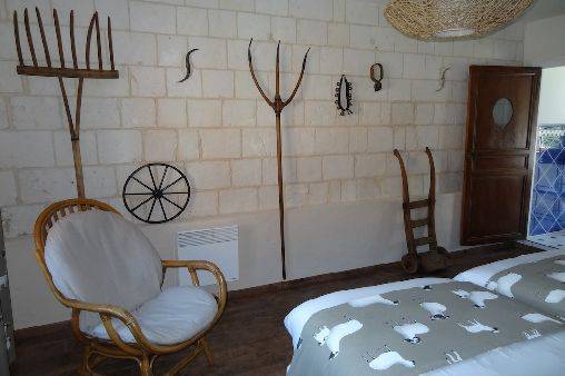 pièce à vivre de 45m2, avec deux cheminées à l'ancienne dont une, équipée d'un feu à bois, une cuisine de 22m2 entièrement équipée, une chambre romantique (lit 160/200)avec sa salle de bain indépendante, une chambre dite "l'étable"(lits 2*90/200); au décor original ,avec sa salle de bain rétro également indépendante, la chambre bleue équipée d'un lit 90/190.