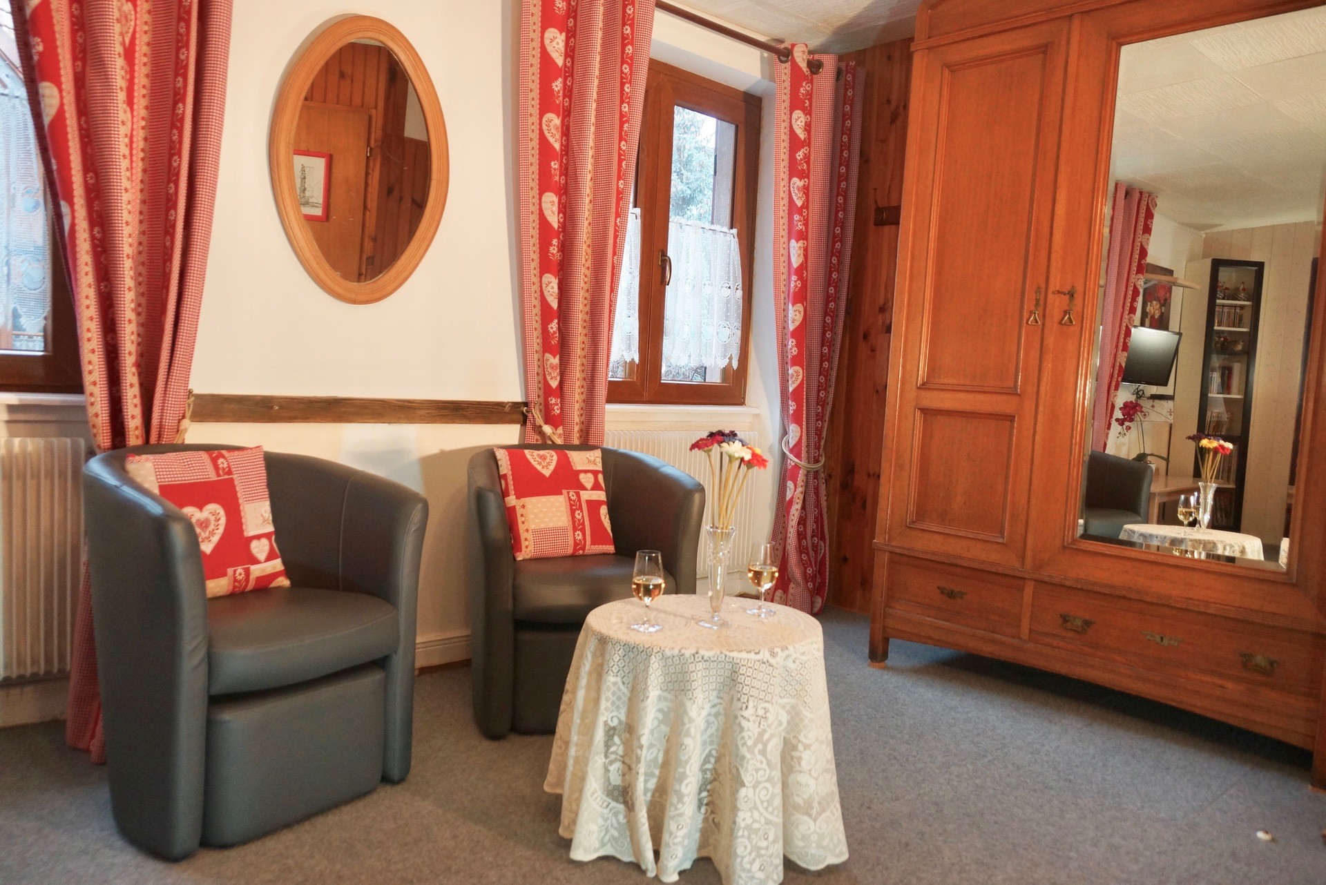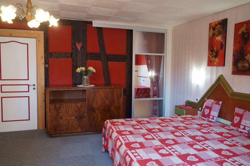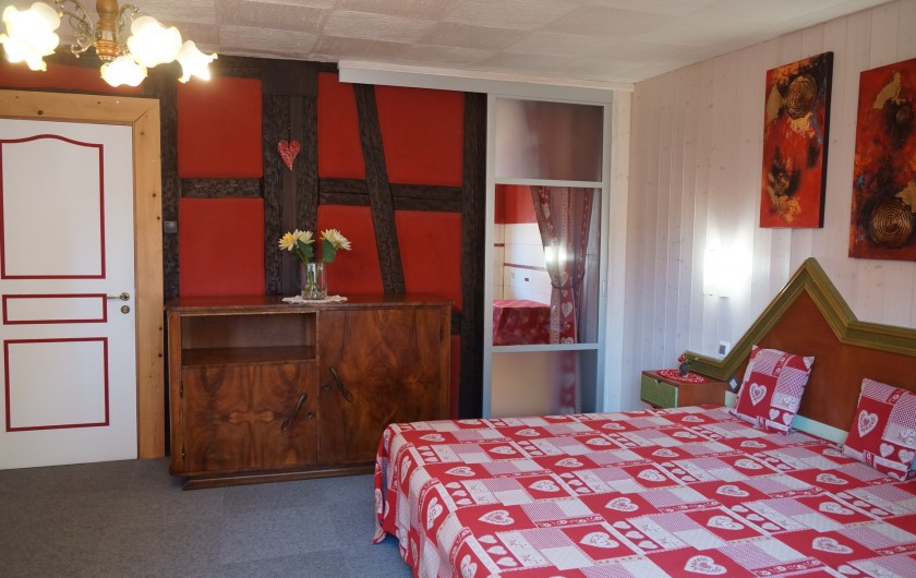 - une très belle chambre avec un lit King Size neuf 180 x 190, armoire, meubles alsaciens, table, mobilier alsacien, chaises, porte valise pliant…