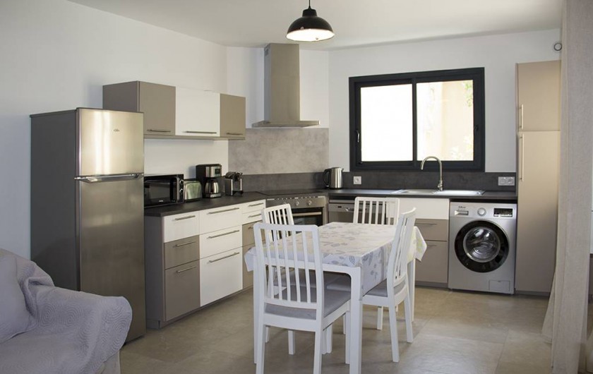 Plaque à induction, hotte aspirante, four, lave vaisselle, lave linge, réfrigérateur congélateur, cafetière, grille pain, produits d'entretien, Table et fer à repasser, aspirateur, sèche serviettes sèche cheveux etc...