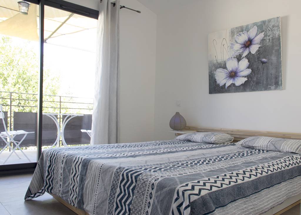 Une chambre séparée,donnant sur un balcon (literie en 160 cm),