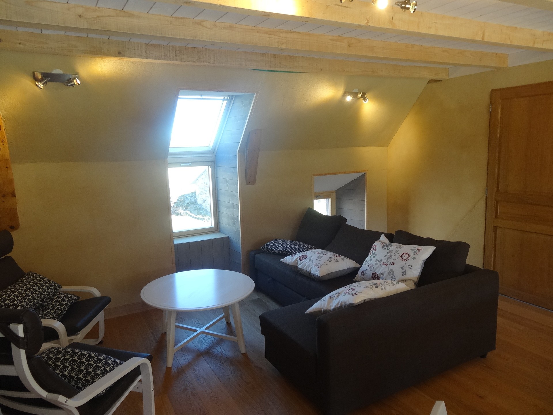 Ce gîte dispose d’un salon lumineux avec vue imprenable sur les Roches Tuilière et Sanadoire.