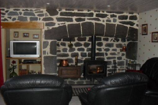 A 980 m d'altitude, située sur la commune de Roffiac, maison de caractère, avec véranda d'agrément, cour non fermée, pelouse et barbecue, salon de jardin avec vue sur les monts du Cantal.