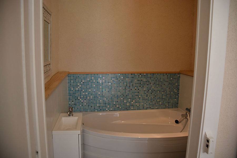 est équipée d’un lave-vaisselle, d’une machine à laver, d’un séche linge, d’un four à micro-ondes, et d’un réfrigérateur congélateur…