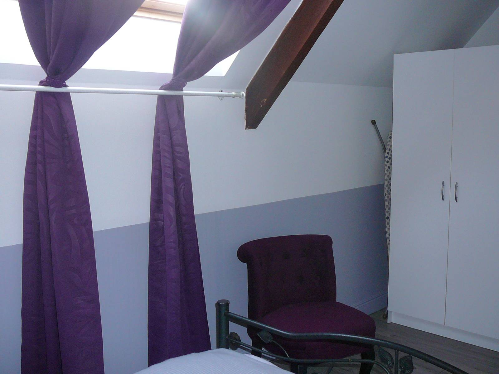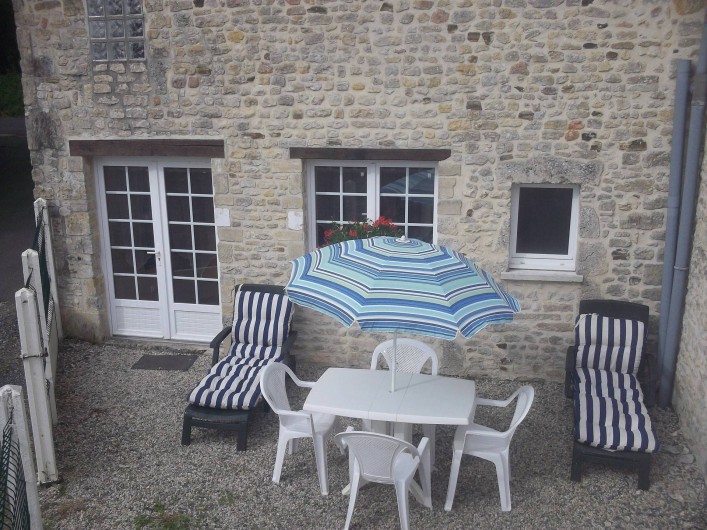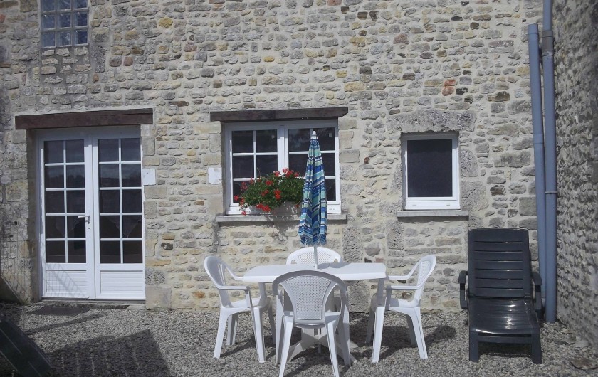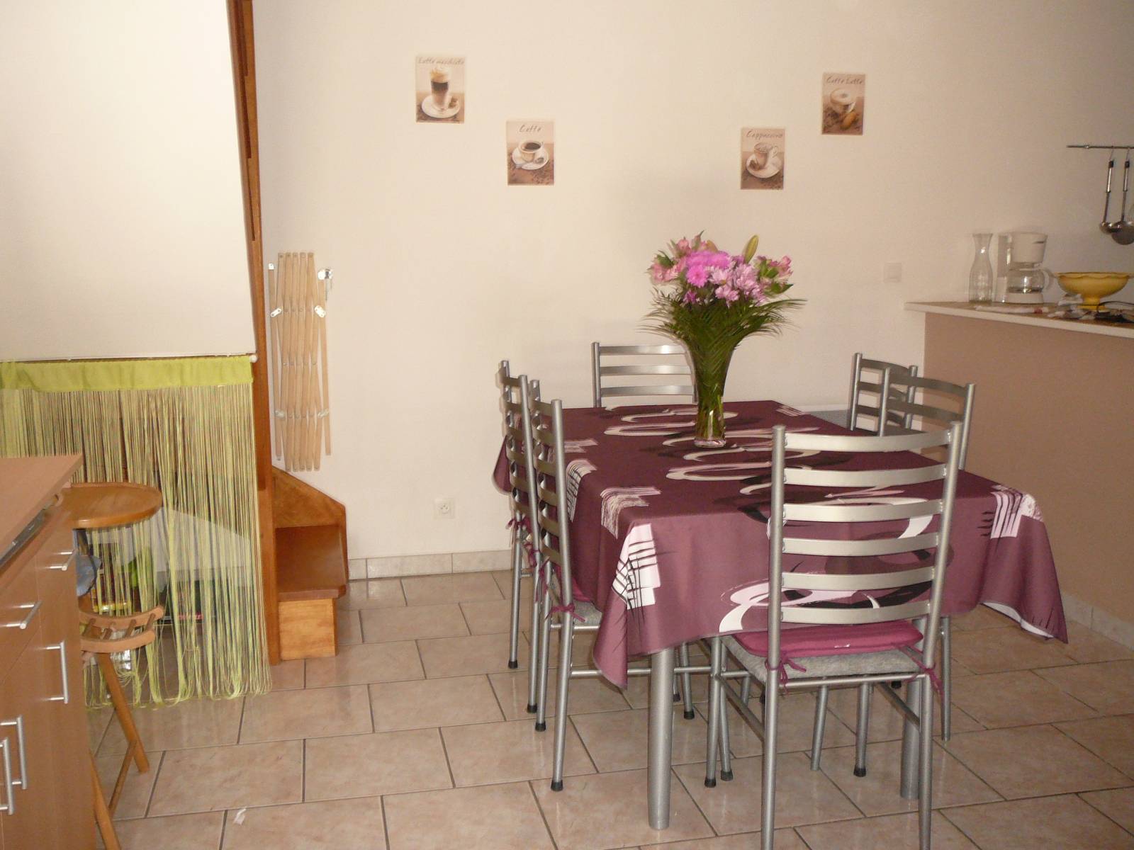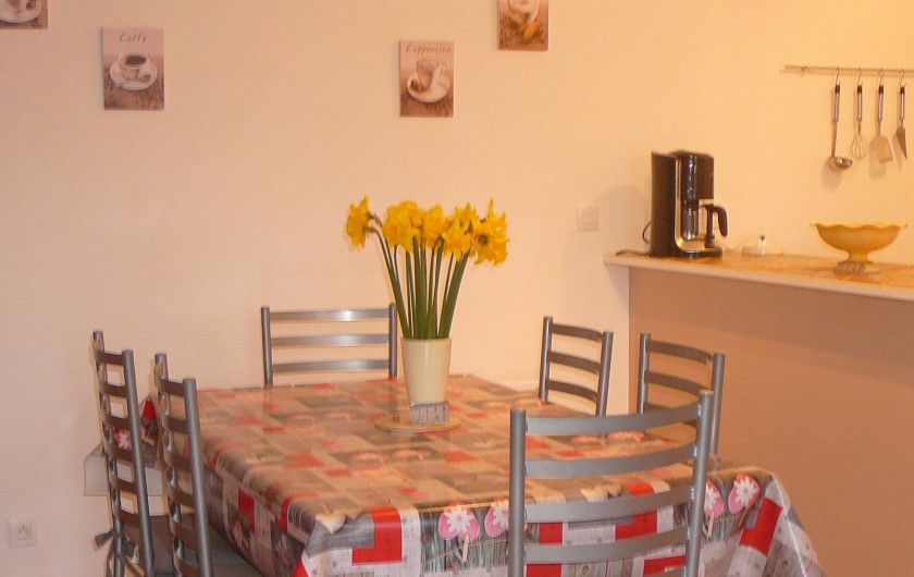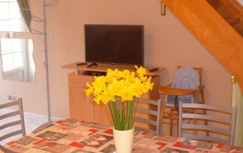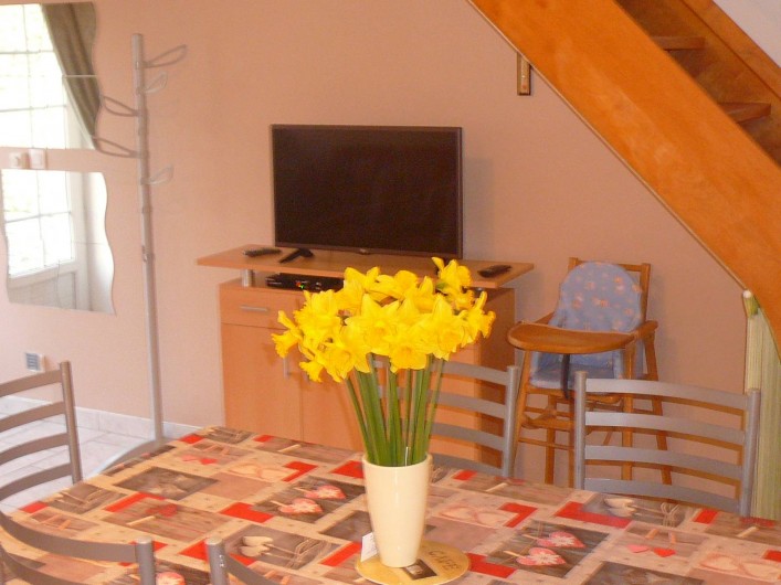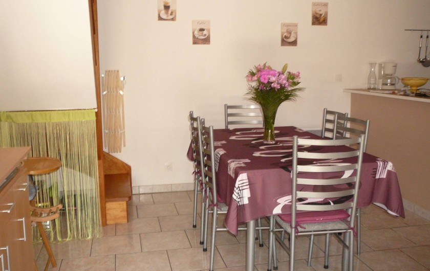 Gîte mitoyen à l'habitation des propriétaires. R-d-c : séjour avec salon, canapé et espace cuisine, salle d'eau avec wc. Etage : 2 ch (2 lits 2 pers).1 couchage d'appoint supplémentaire. Chauffage