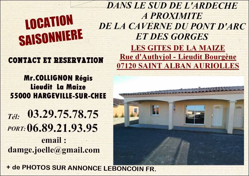 LOCATION DE 2 GITES dans le sud de l' Ardèche méridionale