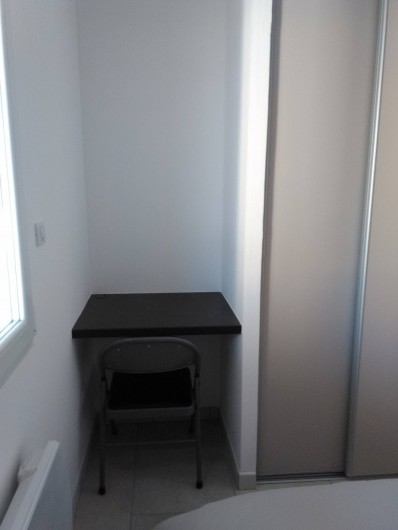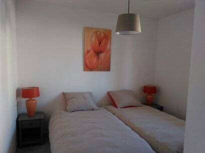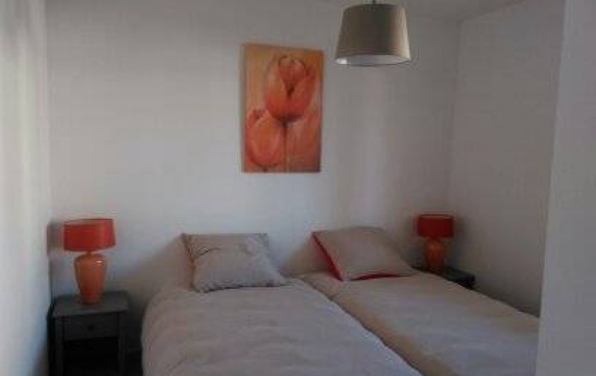 Une chambre avec 2 lits de 90 placard et coin bureau.