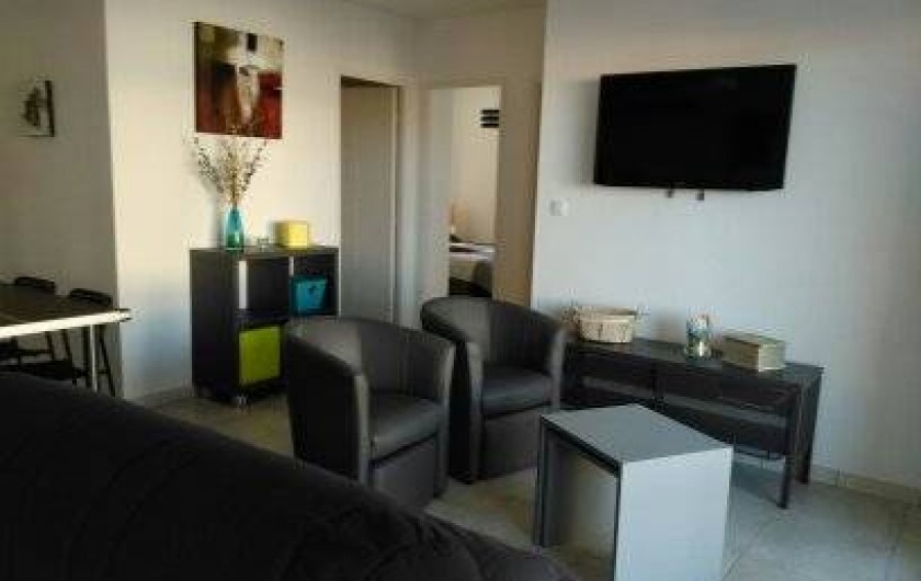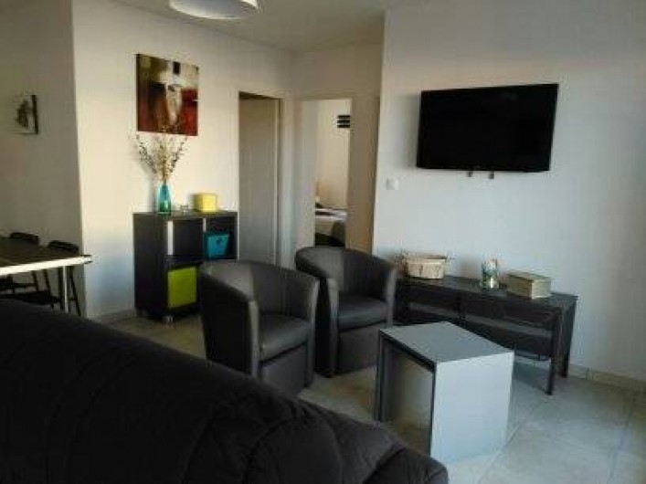 Le coin salon équipé d'un canapé convertible. fauteuils,