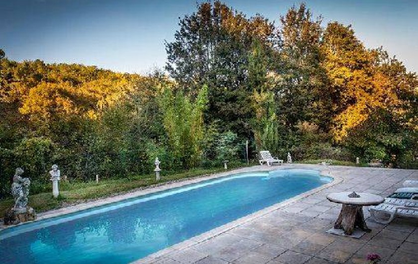 Cette ferme périgourdine authentique se trouve dans une forêt privée entourée par la nature. En été, les champs sont pleins de fleurs et d'oiseaux sauvages en créant un cadre paisible dans lequel vous baigner dans votre piscine privée pour famille nombreuse. La maison est décorée avec un mélange d'antiquités locales et des objets étrangers, recueillies par les propriétaires sur leurs nombreux voyages. Le grand espace de vie spacieux, combiné avec une salle de bains dans toutes les chambres, permet à chacun de jouir de leur intimité tout en partageant le luxe de cette spacieuse
