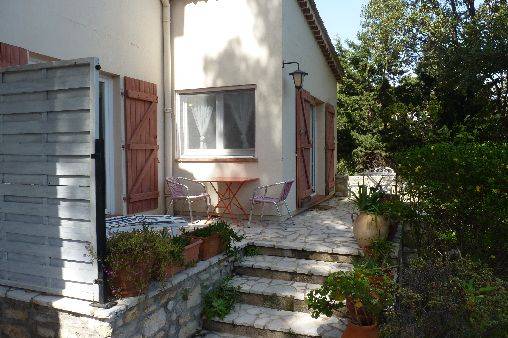 Appartement 4 personnes dans villa avec un grand jardin arborée et piscine sécurisée. Quartier résidentiel et très calme. T2 rez de jardin avec terrasses sur séjour et chambre disposant de toutes les commodités, bain de soleil, lave linge et vaisselle, téléviseur, wifi, micro-onde et four. Parking privé fermé pouvant accueillir deux véhicules et entrée privative. Vous pourrez passer d'agréable après midi en famille au bord de la piscine en toute tranquilité. A 10 mn de marche, vous trouverez des criques et les premiers commerces.