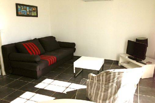 Le gîte dispose d'une pièce à vivre avec un canapé lit et coin cuisine entièrement équipé (plaque de cuisson, micro-onde, lave-linge, réfrigérateur, ustensiles de cuisine, vaisselle....), une chambre avec lit en 140cm et rangements,