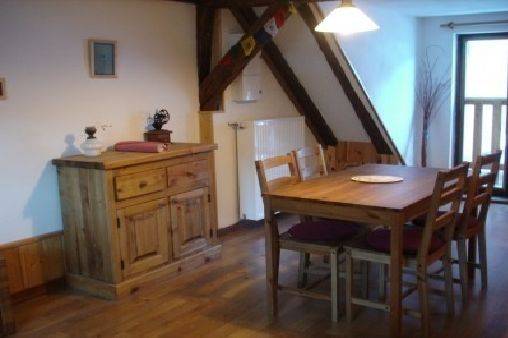 Gite dans la maison du propriétaire. 1er étage : séjour-cuisine coin salon (1 convertible 2 p.), 1 chambre (3 lits 1 p.), salle d'eau (douche). Draps inclus + lits faits. Terrain. Ski de fond 3km, la Féclaz (ski alpin + fond) 6.5km, Aillon station 20km. Plan
