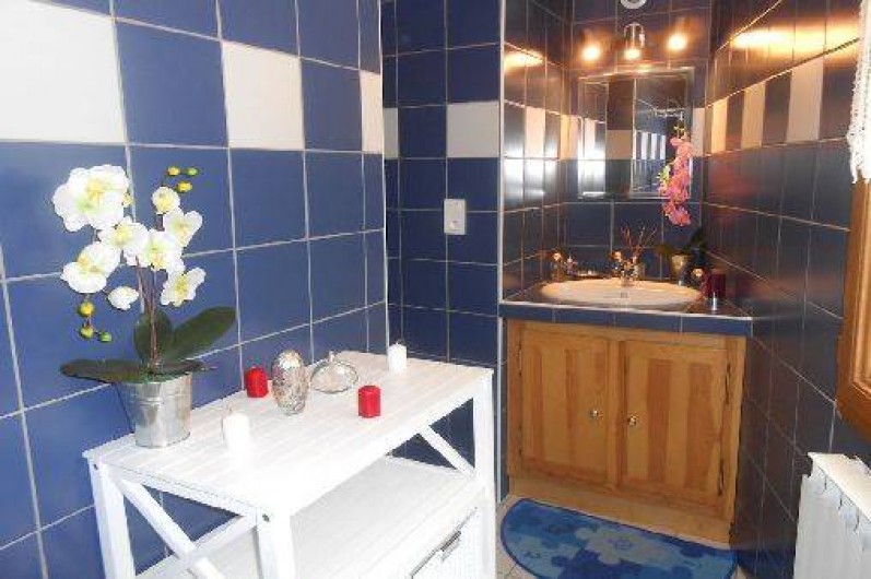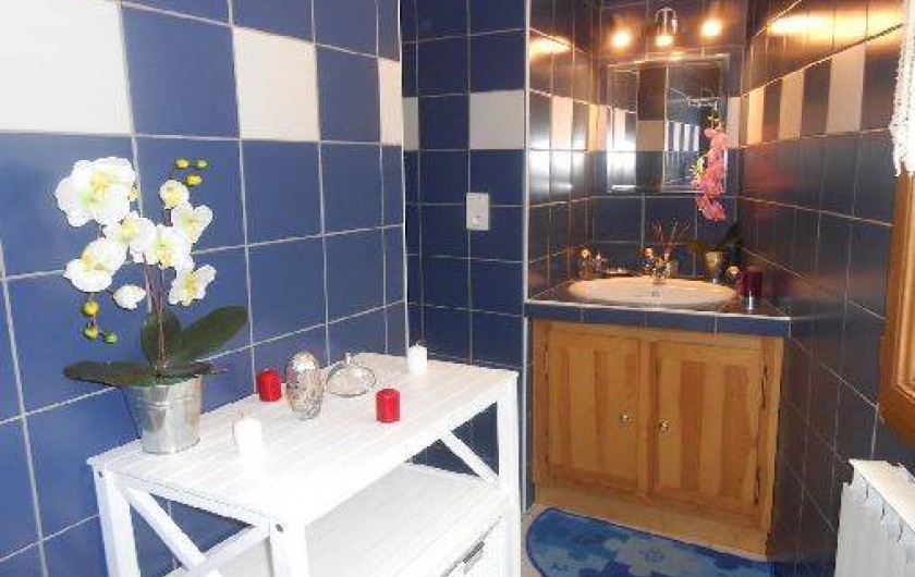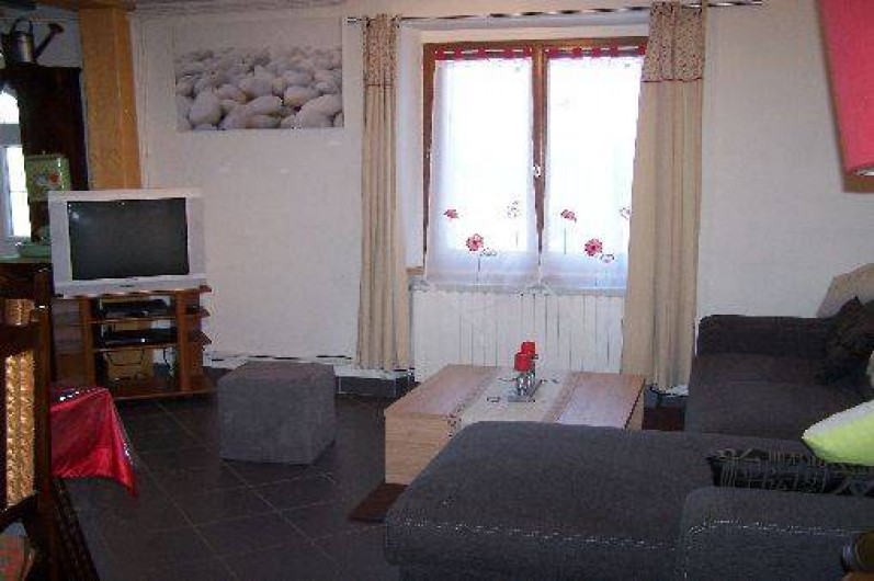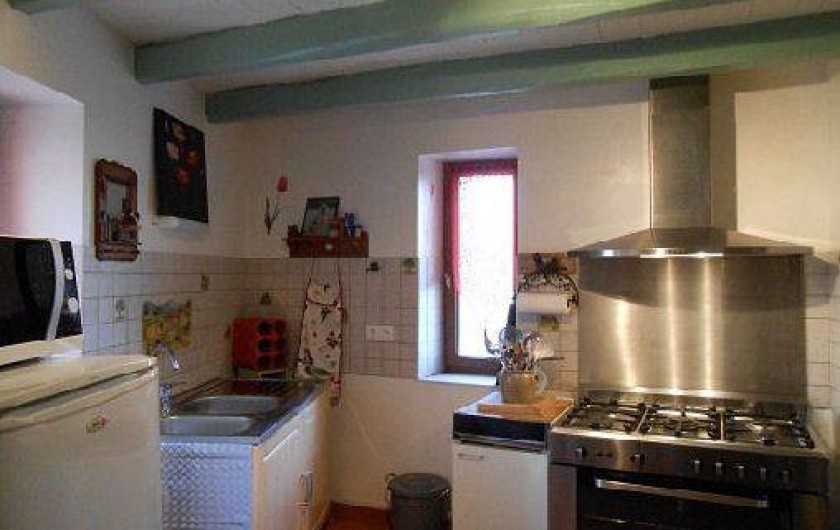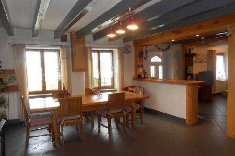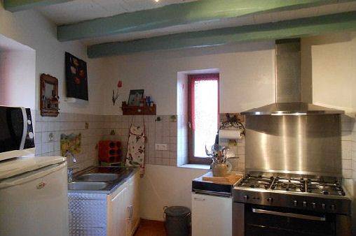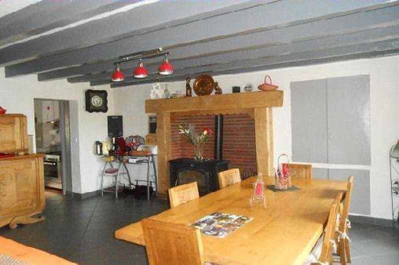 RDC : cuisine américaine, salle à manger-salon avec TV et canapé d'angle convertible, poêle à bois. 1er étage : 3 chambres (2 lits en 140 et 2 lits en 90 et 110), salle de