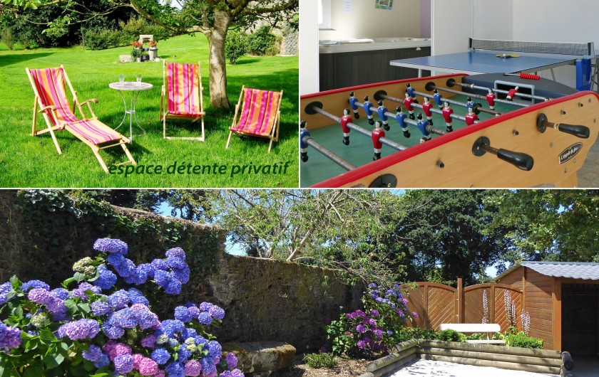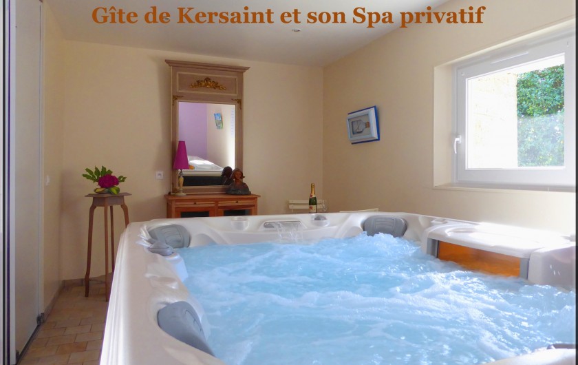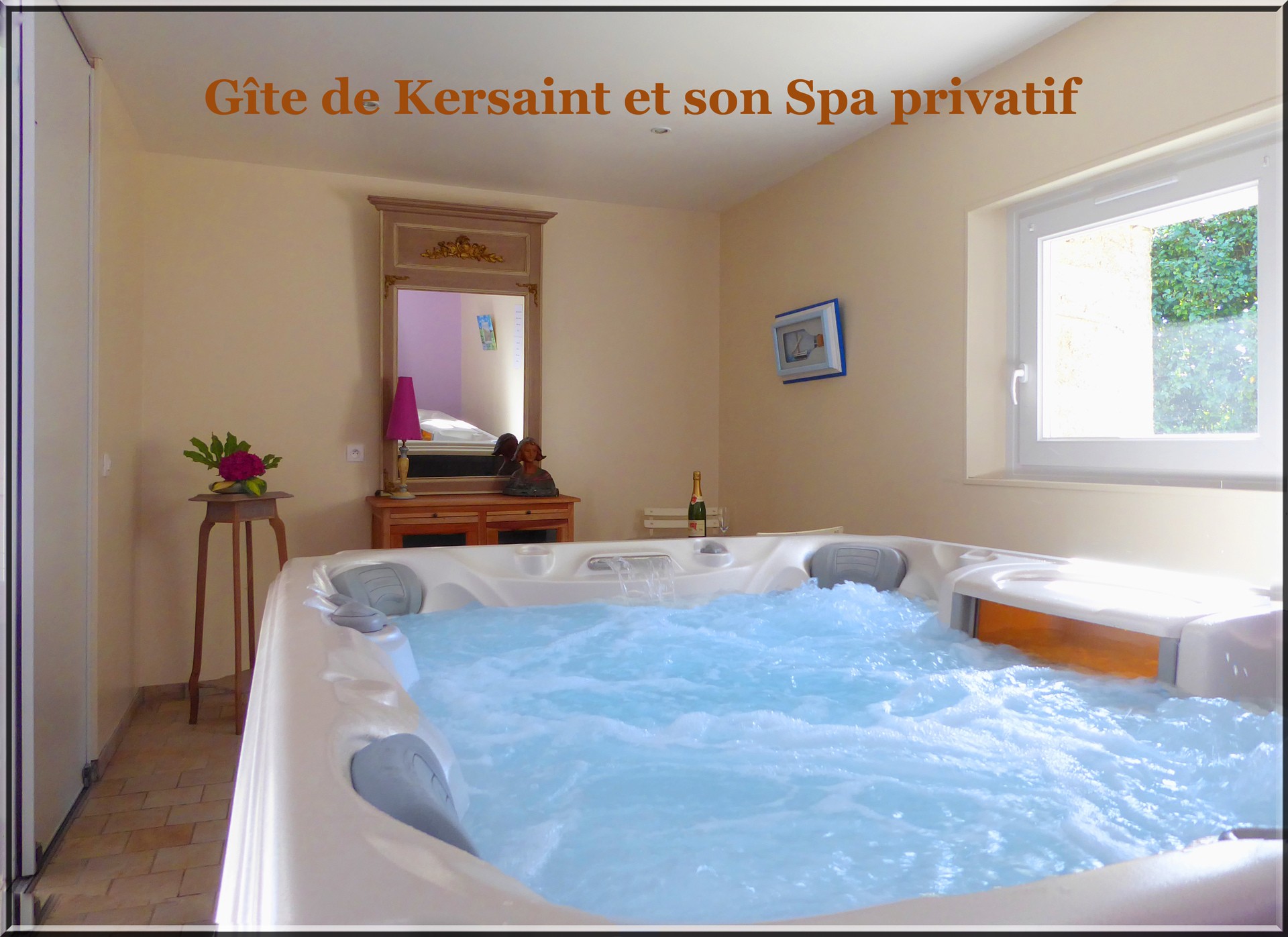 Même l'hiver vous pouvez profiter du soleil derrière la baie vitrée de la salle de jeux à laquelle vous accédez à partir de la cuisine pour vous adonnez à des parties acharnées de ping pong ou de baby foot. Quelques pas supplémentaires, vous voilà dans la pièce attenante où trône le Spa. Vous avez tout le temps devant vous, car il est privatif et sans supplément de prix. Je ne suis pas avertie des demandes de renseignements sur ce site. je ne suis pas avertie des messages de ce site. Merci de bien vouloir me contacter par le biais de notre propre site en tapant : kersaintinepointcom ou "kersaintine gîte"