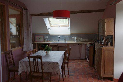 la cuisine spacieuse est lumineuse, le salon chaleureux (parquet, murs en pierre et bois) les 3 chambres sont confortables, spacieuses et calmes.