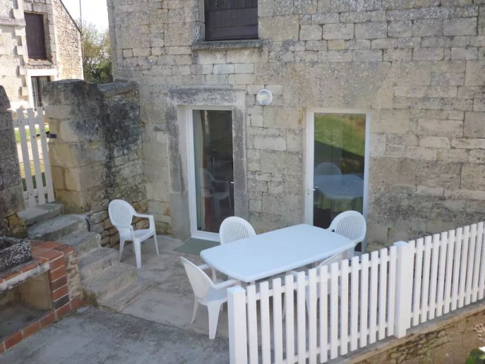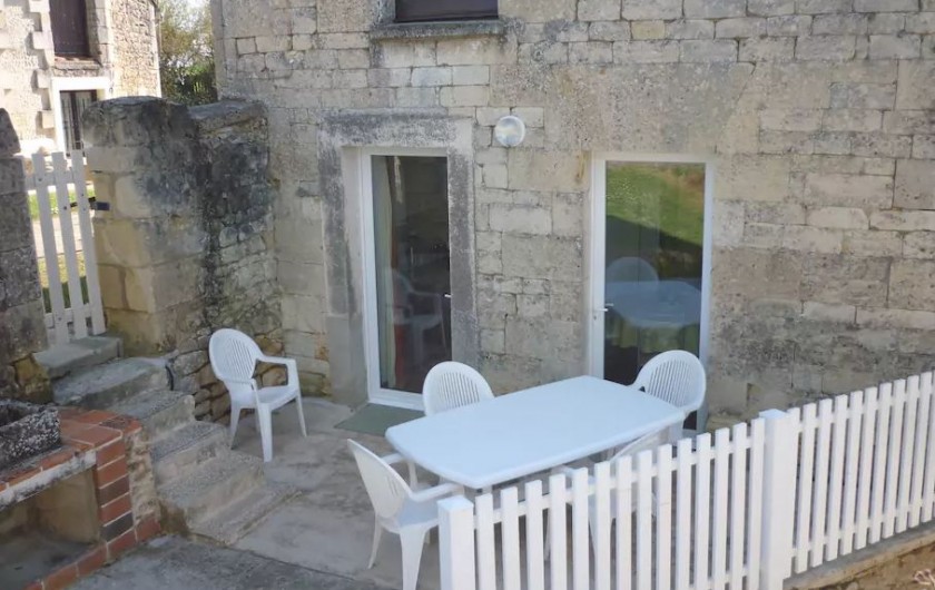 Barbecue. Salon de jardin. Terrain de jeu de boules.