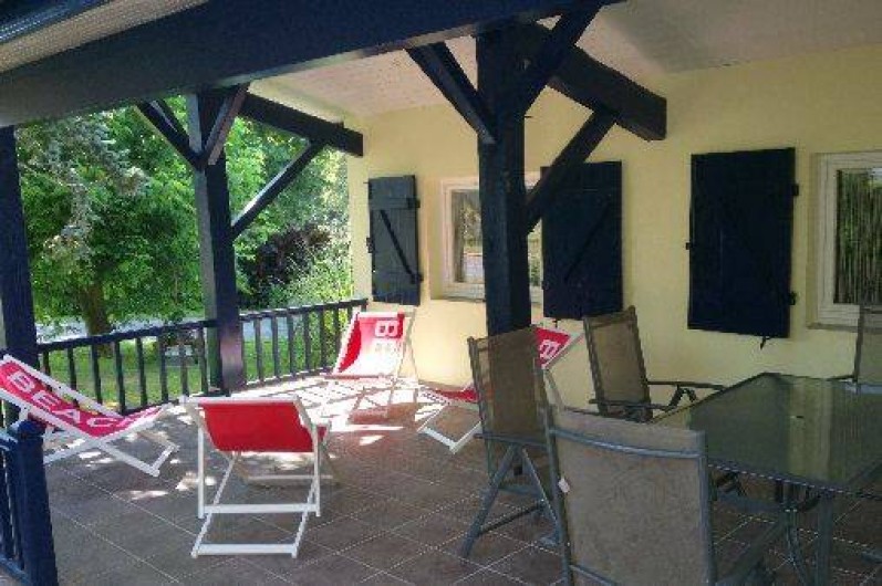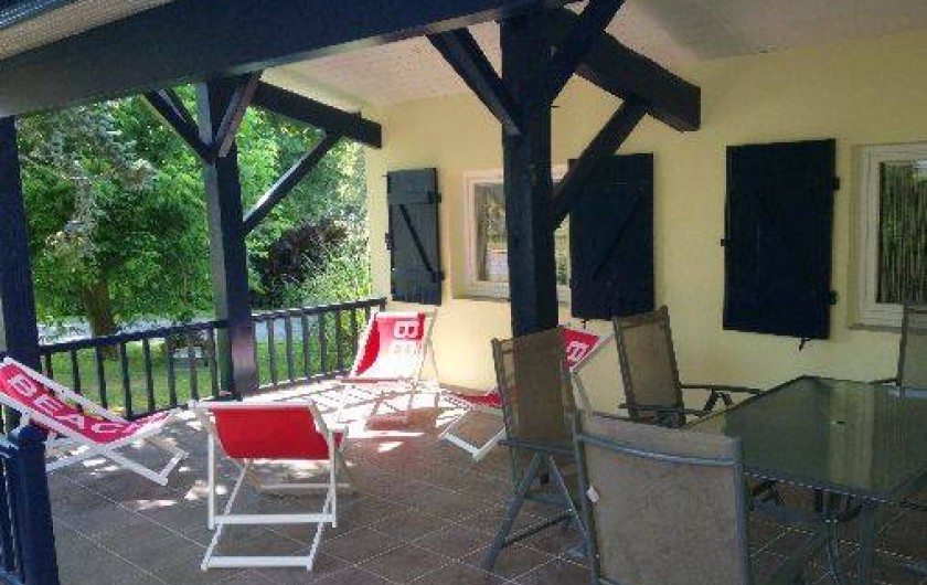 Vous pourrez bénéficier d'une vaste et agréable terrasse couverte avec meubles de jardin, dans un cadre arboré.