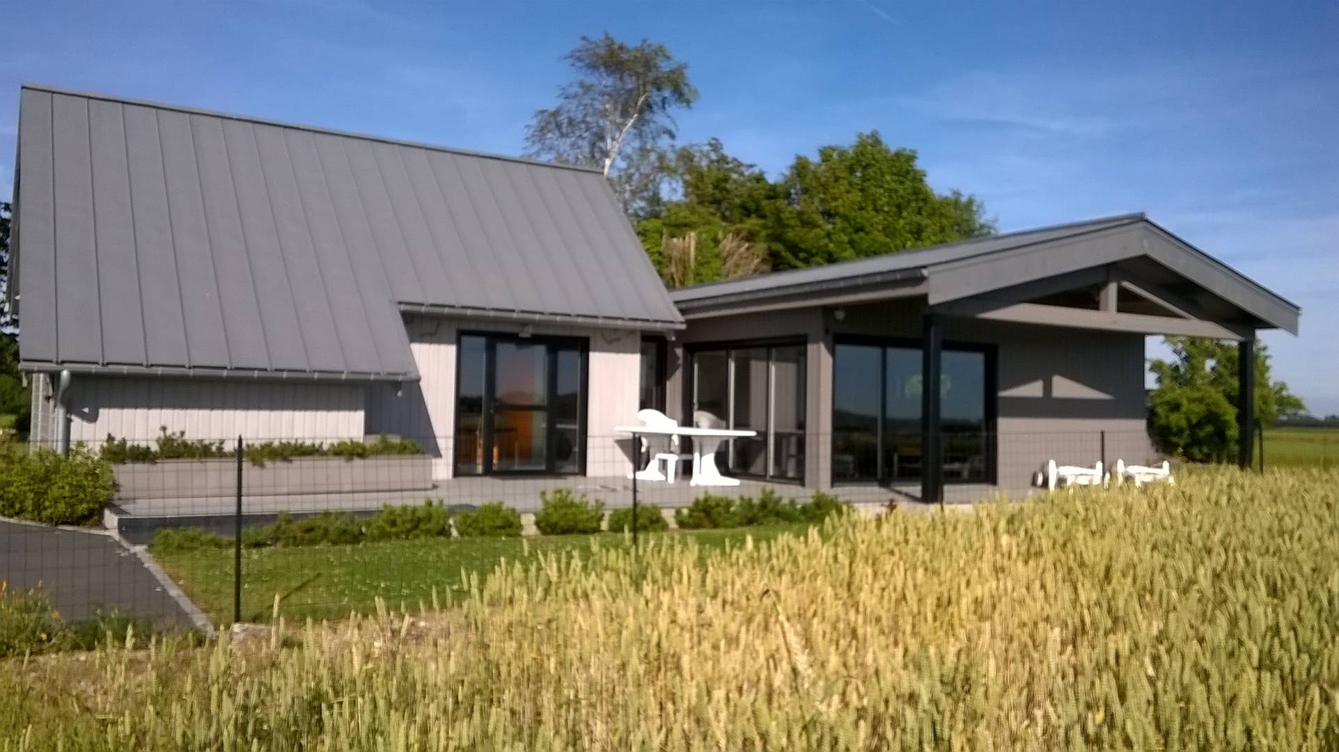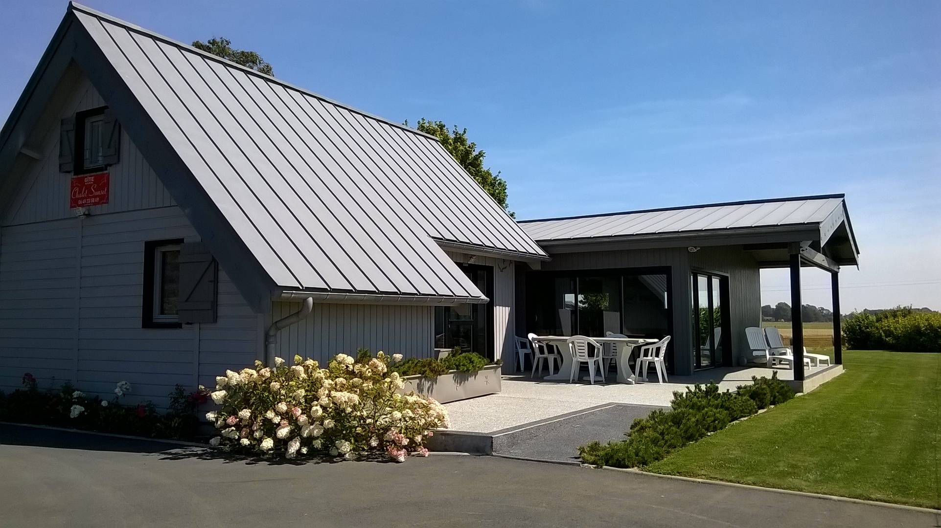 Chalet bois contemporain à la décoration soignée avec vue panoramique sur la campagne et la mer. Son exposition vous garantit de splendides soleils couchants.
