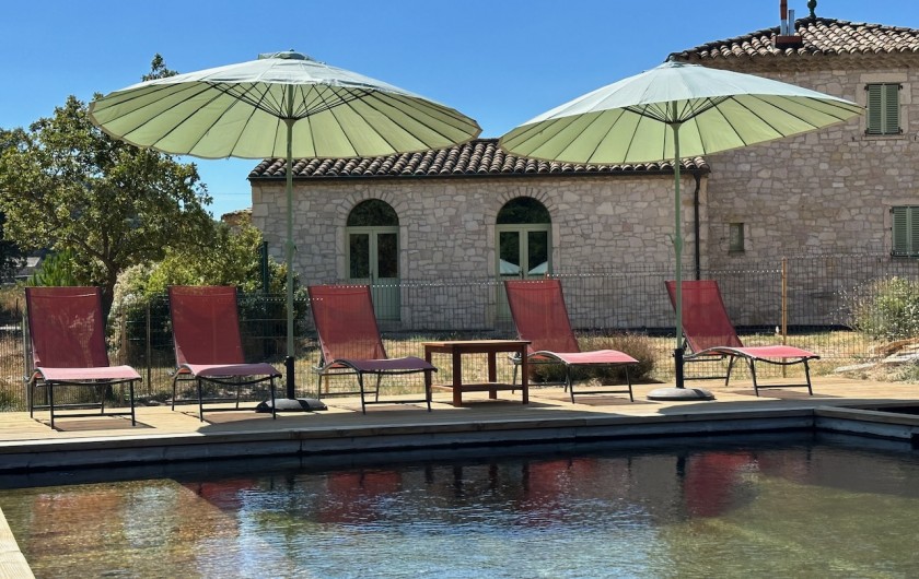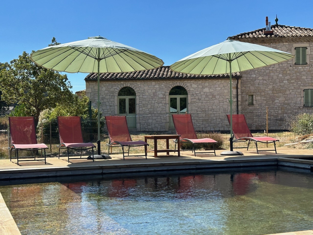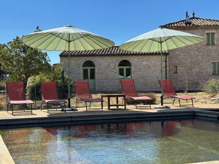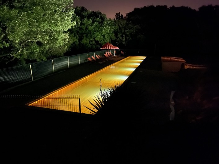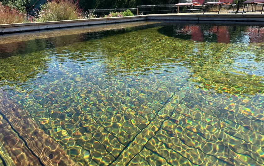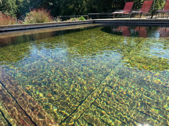 Les parois intérieures des deux bassins sont en douglas français. Le traitement est à base d'UV et d'oxygène actif. Véritable confort de baignade, l’eau est douce et n’agresse pas la peau. Ces piscines sont si nécessaire chauffées entre avril et mi-novembre.