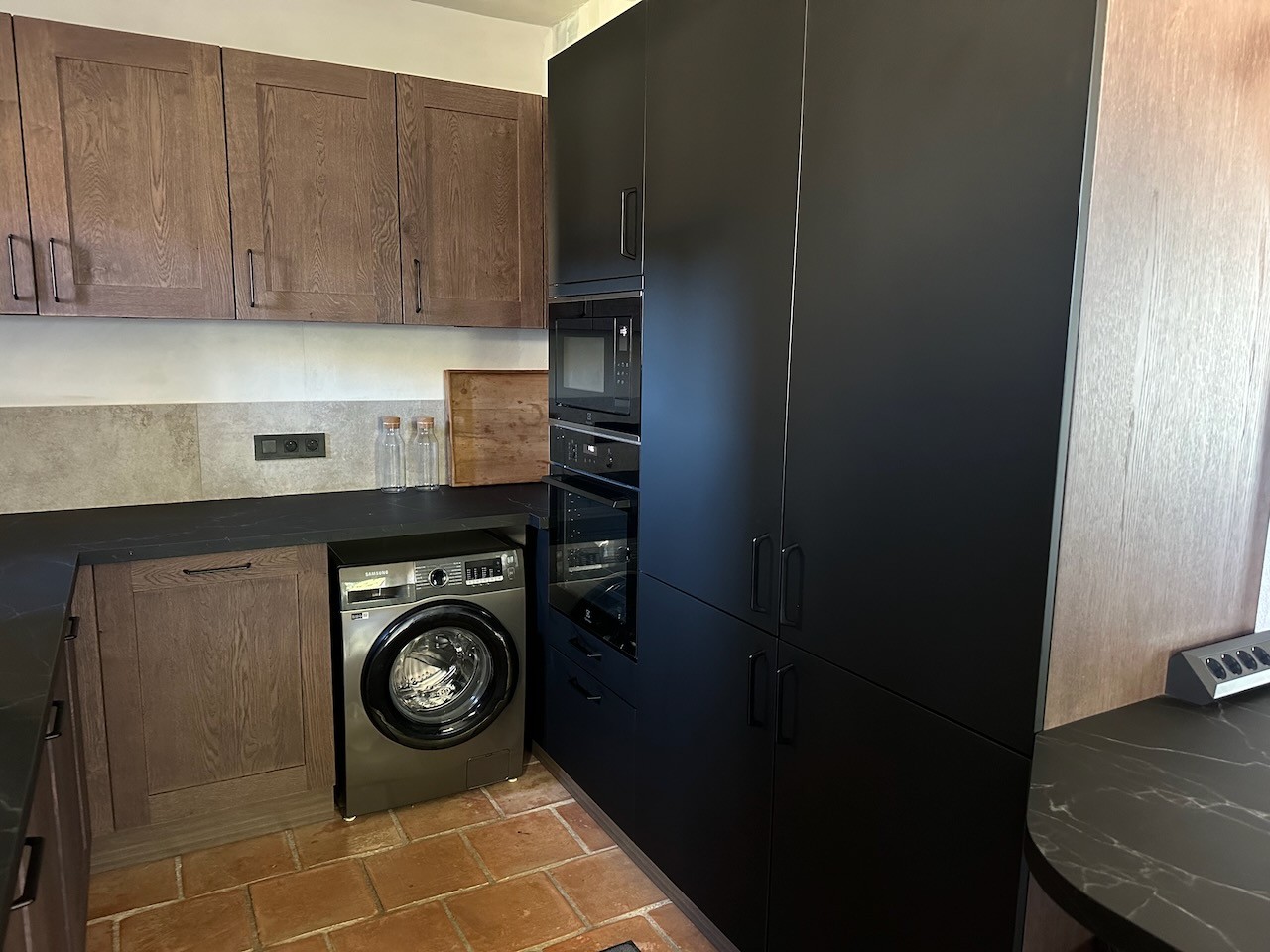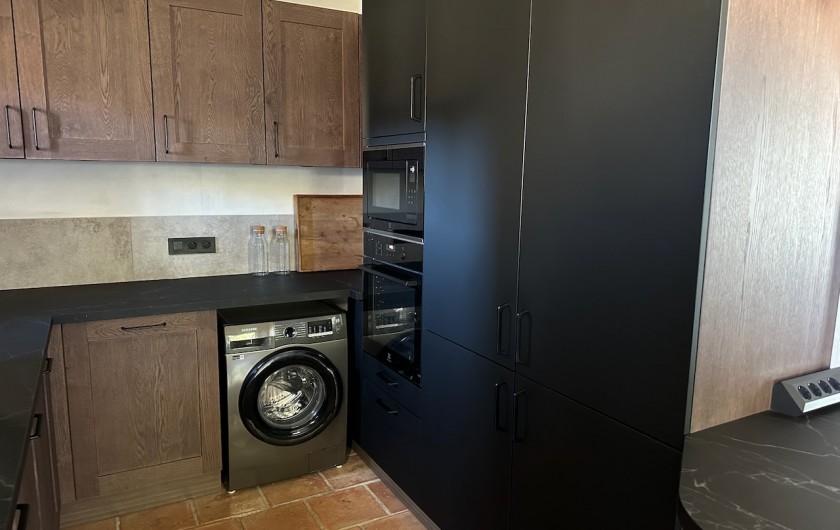 - Cuisine entièrement équipée (dont lave-vaisselle, four, four micro-ondes, cafetière et machine à café qui broie les grains, grille-pain, bouilloire, mixer, lave-linge) et salle à manger avec table pour 15 personnes.