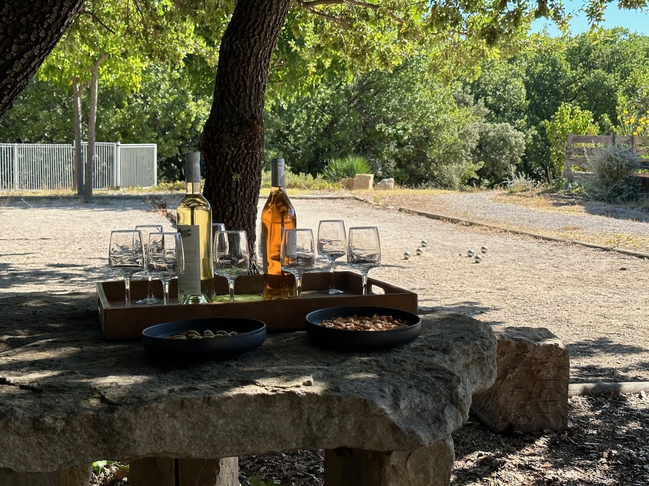 Vous profiterez aussi de deux terrasses, barbecue, mobilier de jardin, deux terrains de pétanque, parking privé de 6 places et 2 prises renforcées pour véhicules ou vélos électrique.
