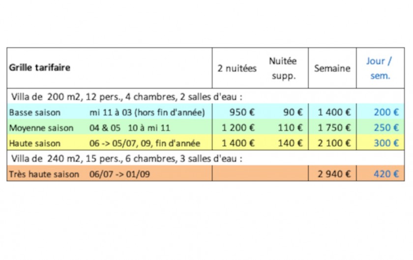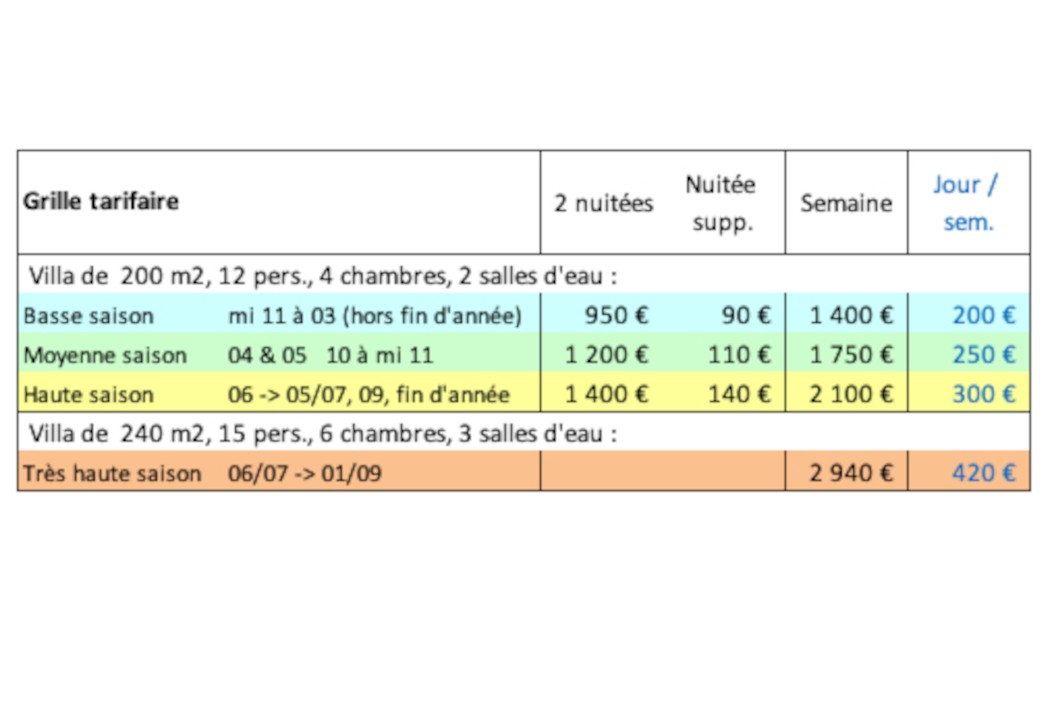 Le planning de réservation est à jour. Le tarif journalier indiqué correspond à une location d’une durée d’au moins une semaine. Il est possible de louer sur une période plus courte au tarif indiqué sur la dernière photo.