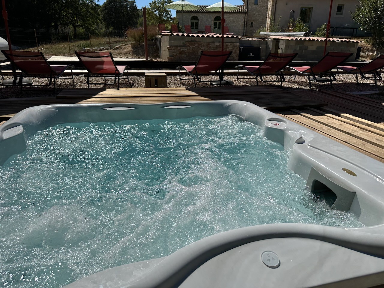- un véritable spa de la marque Jacuzzi de 4 places dont une allongée chauffé à 34 °C.