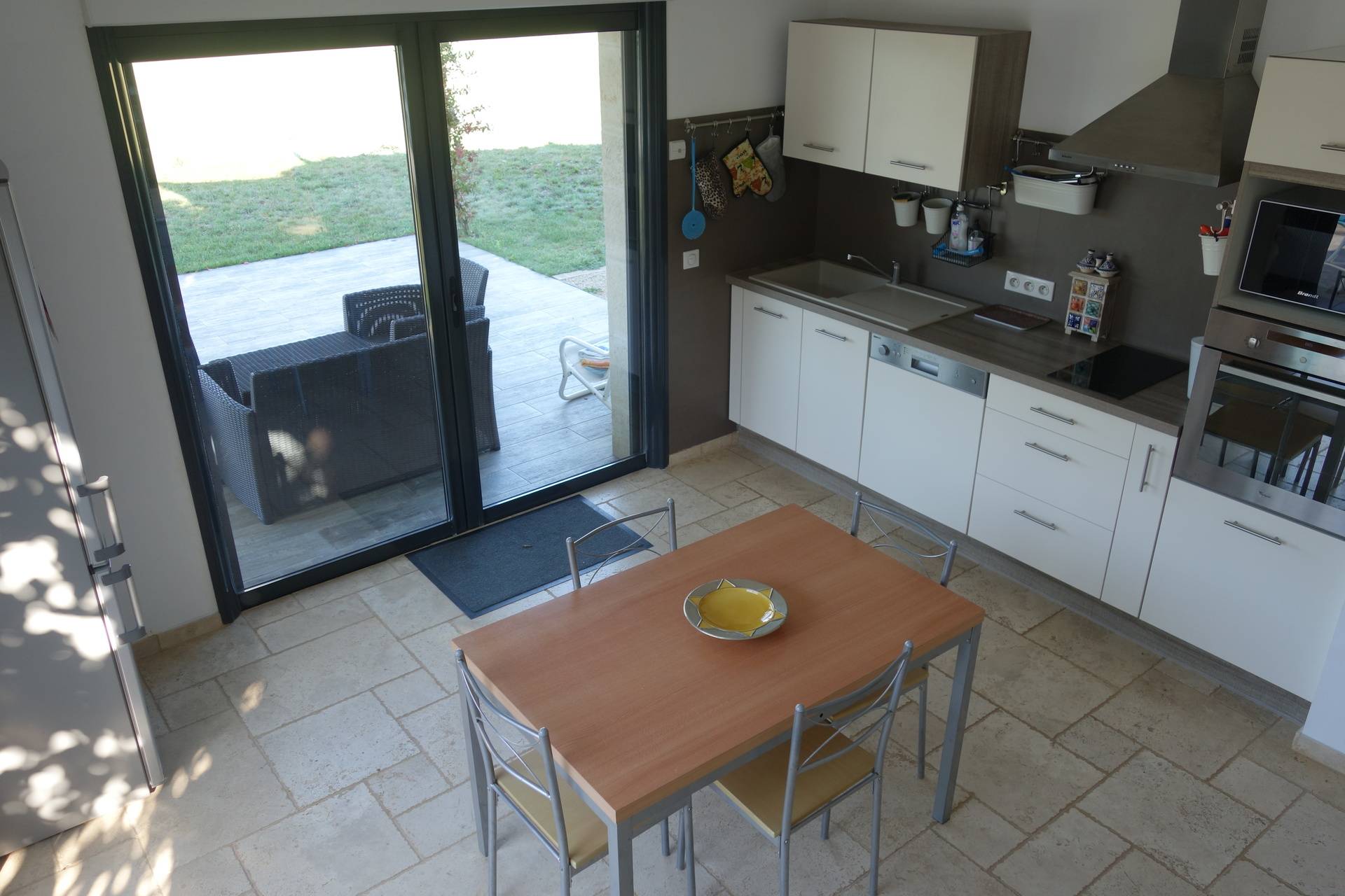 Une cuisine entièrement équipée, (plaque induction, four, micro-onde, lave-vaisselle, cafetière simple, à capsules, bouilloire) baie vitrée à galandage etc…avec vue imprenable.