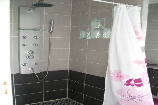 grand lit (160 * 200 cm) et un lit bébé. 1 cabinet de toilette avec WC inclus.