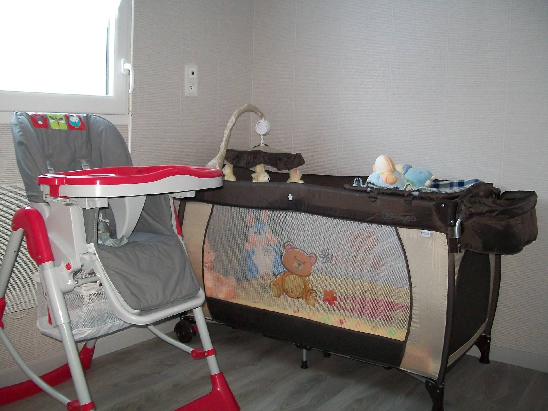 1 chambre de 2 pers avec un grand lit (160 * 200 cm), 1 chambre 2 pers avec 2 lits séparés (90 * 190 cm) - 1 chambre enfant avec 1 lit 1 pers et un lit parapluie et tout l'équipements bébé (table à langer, baignoire, chaise haute, transat, parc ....) SE (douche à l'italienne) WC inclus.