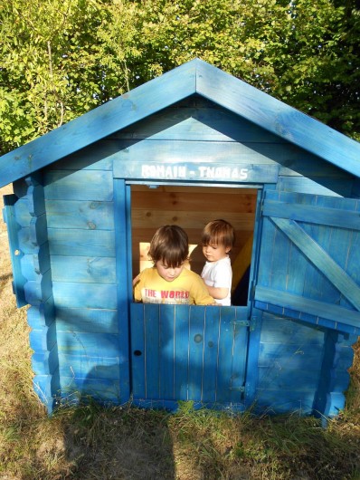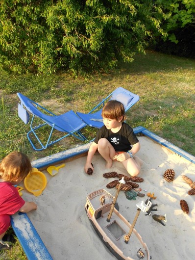 Espace, esthétique, terrasse privative et jardin ouvert et vaste sur des coins d'ombre , de repos, de jeux : ping-pong et portique pour les enfants, sable...