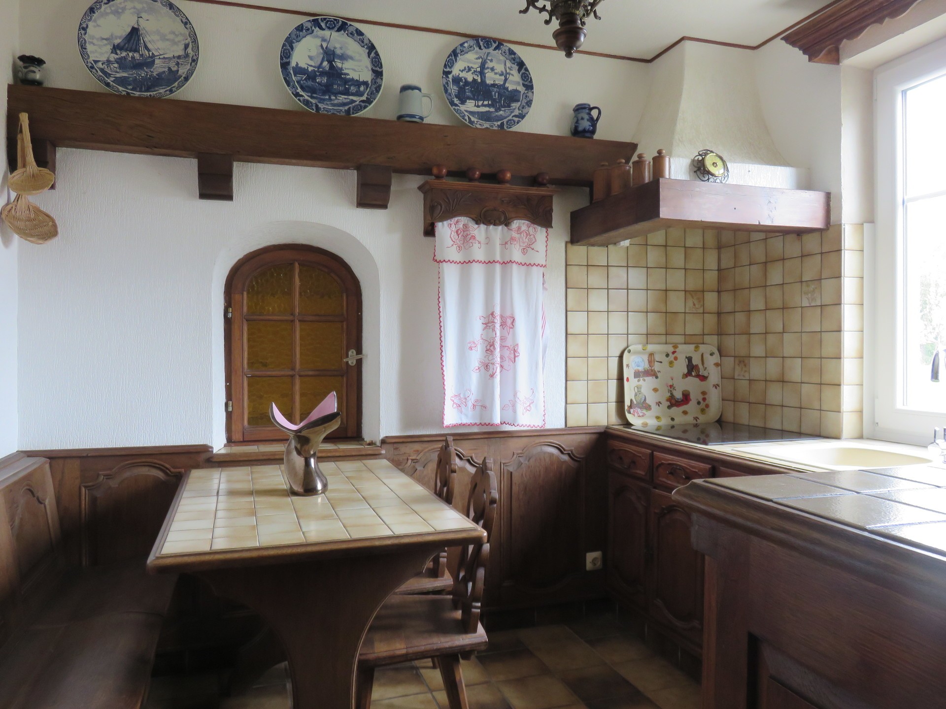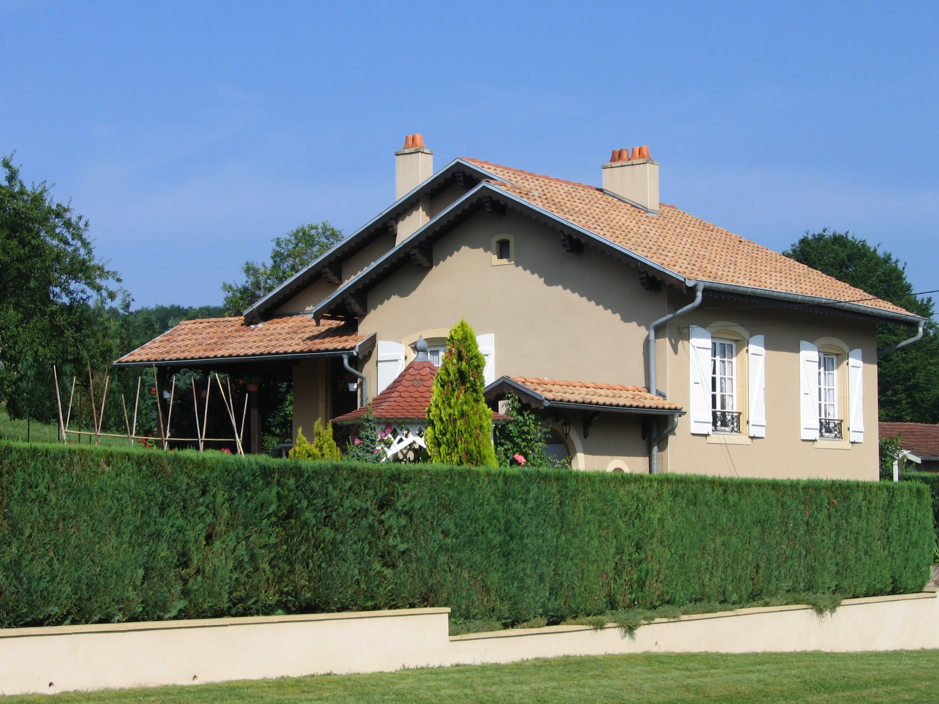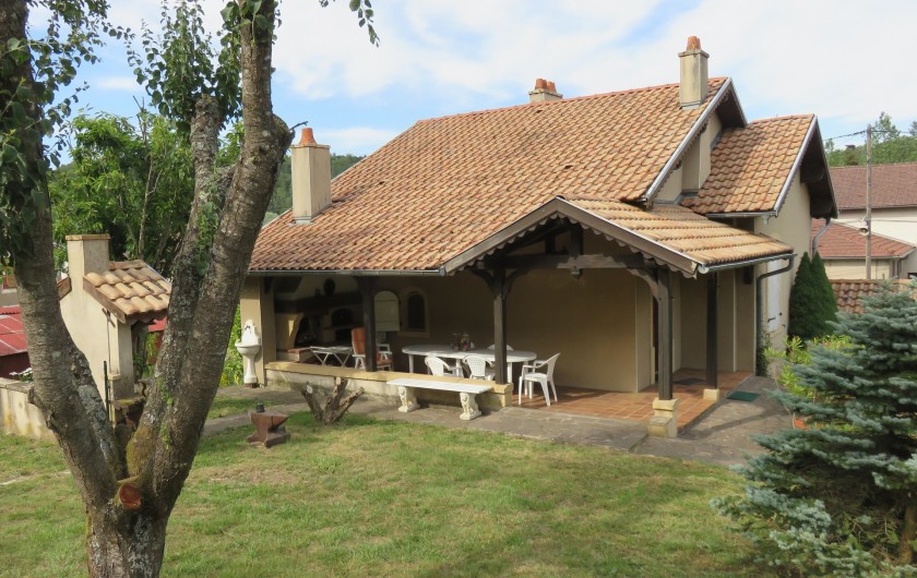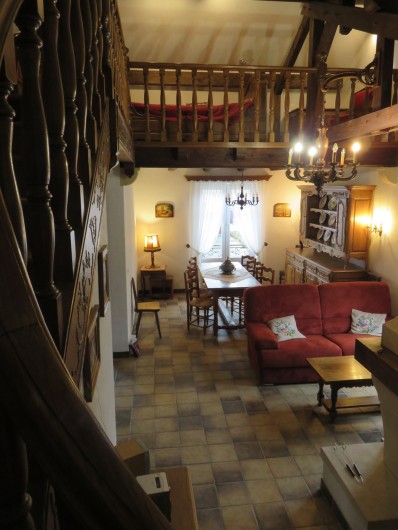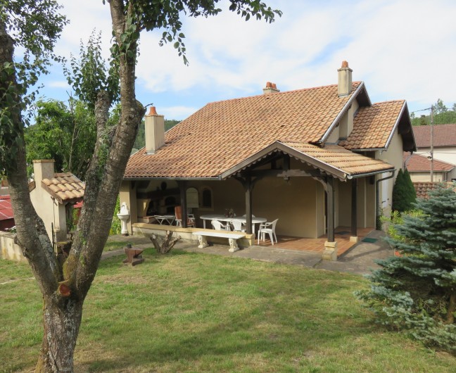 Le gîte de la fontaine fut construit en 1985. Cette maison de style traditionnel, pouvant accueillir 6 à 7 personnes, cache un intérieur très chaleureux avec des boiseries sculptées et un escalier conduisant à une mezzanine. Il comporte 4 chambres, une cuisine équipée et une cheminée dans le salon. Dans la buanderie, une machine à laver et un sèche linge sont à la disposition des locataires.