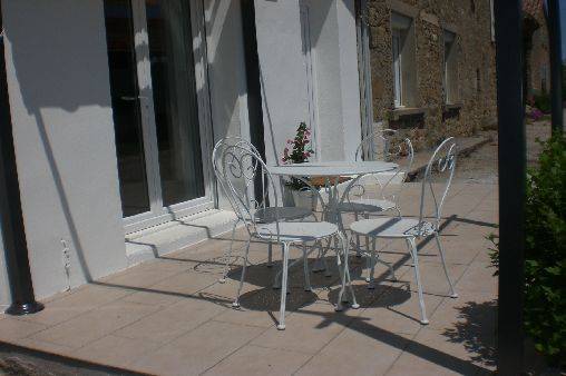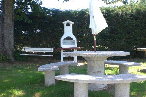 Terrasse, tonnelle + coin ombragé et verdoyant aménagé d'un barbecue et table en pierre sur 150m2 arboré.