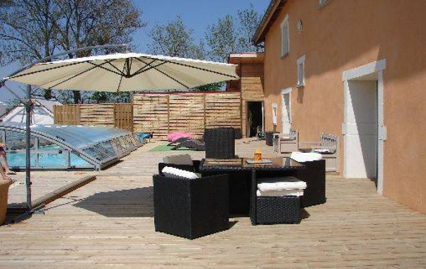 l'on peut admirer par la fenêtre. Les chambres sont équipées de salle de bain de wc, wifi, TV, panier de courtoisie, coffre fort, une terrasse privée avec salon de jardin pour chacune d'elle. Les entrées sont indépendantes.