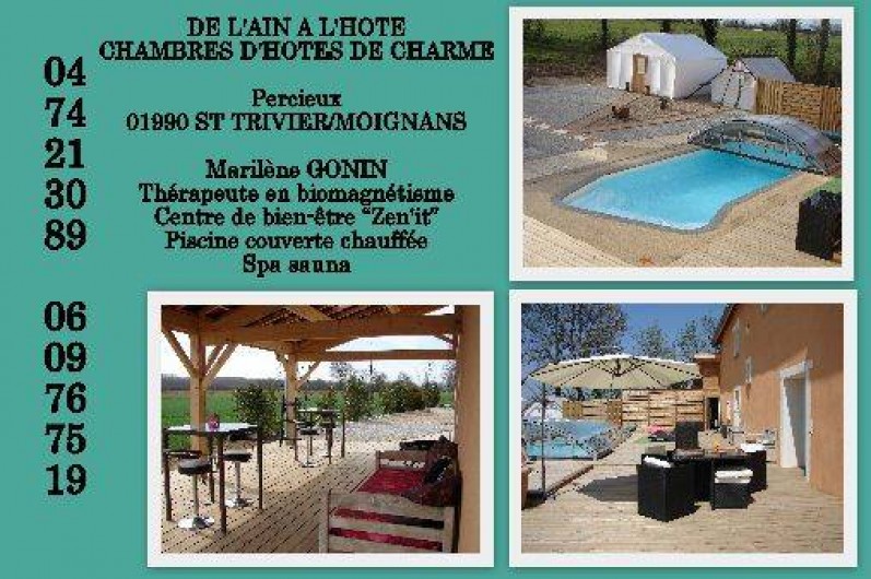 Location de 2 chambres d'hôtes de charme à Saint Trivier sur Moignans au cœur des Dombes bordées d'étangs. Cette ferme a été rénovée dans le seul but de la rendre plus confortable pour votre séjour dans notre belle région. Les anciens cochoniers de cette ferme ont été restaurés en chambre d'hôtes très calmes et très confortables. La chambre "Aigrette" peu accueillir deux personnes et le chambre "Héron" jusqu'à quatre personnes. L'esprit campagnard a influencé la décoration de cette ferme et le nom des chambres est inspiré des oiseaux de la Dombes que