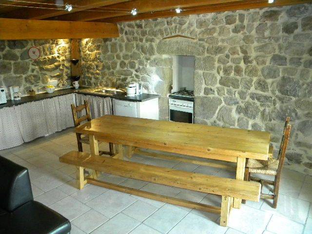 RDC: salle à manger, cuisine équipée (lave-vaisselle), salon avec cheminée et TV, 2 salles de bain avec toilettes.