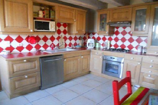 La maison se compose d’une vaste salle ouverte (cuisine – salle à manger - salon – WC) de 75 m² avec une cheminée fermée.