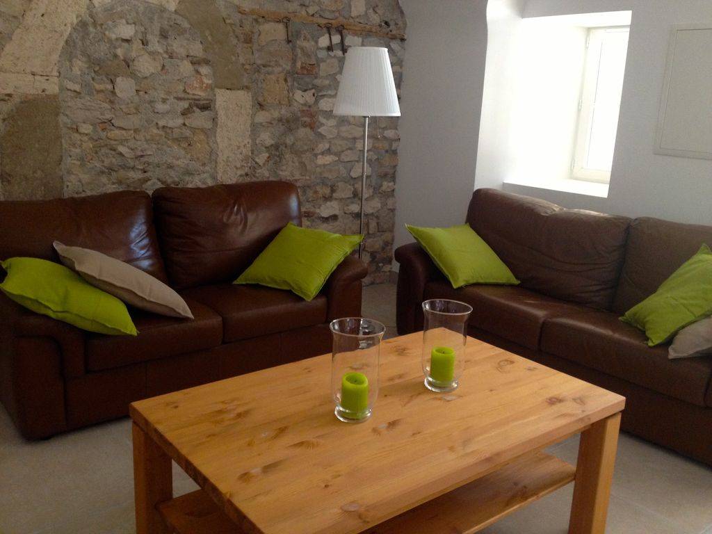 Pour Domitia : au rez de chaussée, son haut plafond vouté et un joli mur de pierre apportent confort et cachet. Deux grandes chambres (17 et 15 m²) se trouvent au 1er niveau ainsi que la salle de bain équipée d'un baignoire