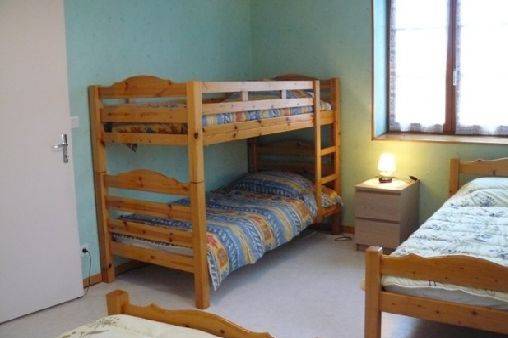 A l'étage: ch1: 2 lits 1 pl et 2 lits superposés, ch2: 1 lit 2 pl, ch3: 1 lit 2 pl, salle de bain et WC indépendant.