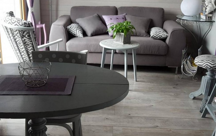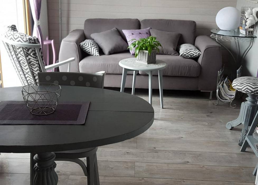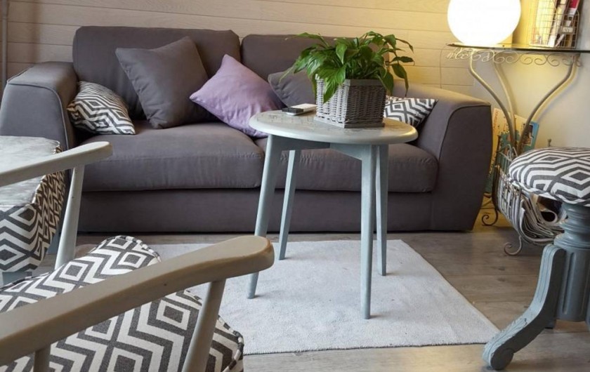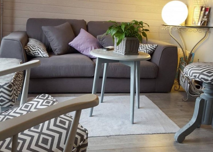 Gîte de plain pied, mitoyen à une maison de maître inoccupée. Séjour avec