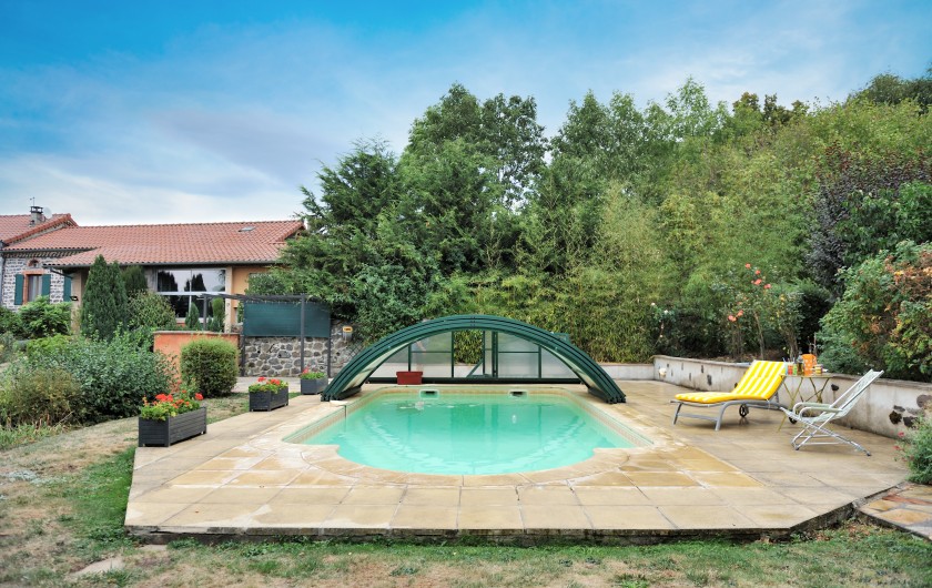 Bienvenue dans notre gite de charme AVEC PISCINE .GITE 3 étoiles situé au cœur de l'Auvergne dans un parc fleuri et arboré de 1ha. avec piscine couverte, solarium, terrain de boules, vélos mis à disposition, wifi, une terrasse couverte et fermée pour les journées fraiches. Salon de jardin nombreux relax autour de la piscine. Grande pièce a vivre avec coin salon coin cheminée et cuisine ouverte. Mezzanine pour le coin relax ou lecture avec fauteuils et clic clac. Salle de bain avec douche hydrojet.