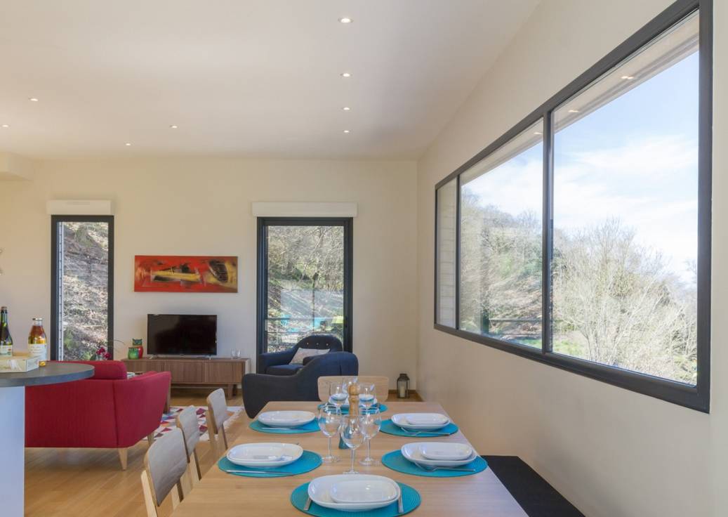 Sur le flanc abrupt d'une colline boisée, cette villa contemporaine offre un panorama magnifique sur l'anse de Vauville. L'immense plage de Siouville bordée par la cap de la Hague est un décor inoubliable. Le vaste séjour en parquet avec ses couleurs chatoyantes est un lieu de vie unique que vous aurez peine à quitter. Chaque grand vitrage est comme un tableau, tantôt végétal, tantôt maritime. Telle une cabane perchée, vous aurez ce sentiment génial d'être seul au monde.