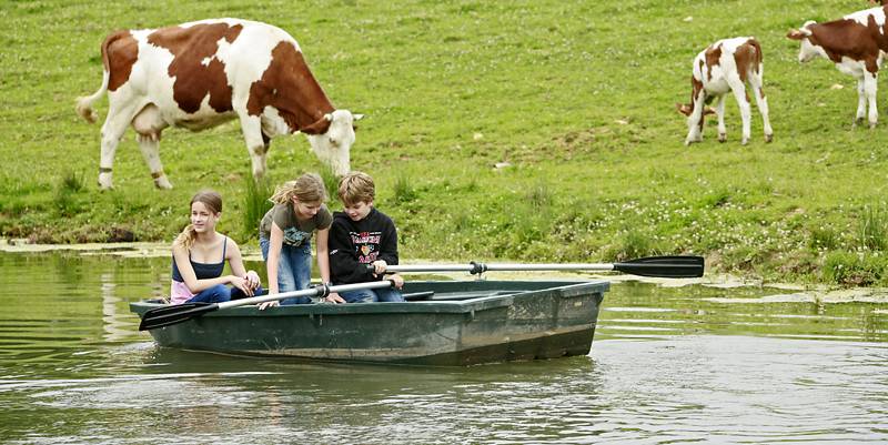 Grand plan d'eau + barque pour se promener et même pêcher .
