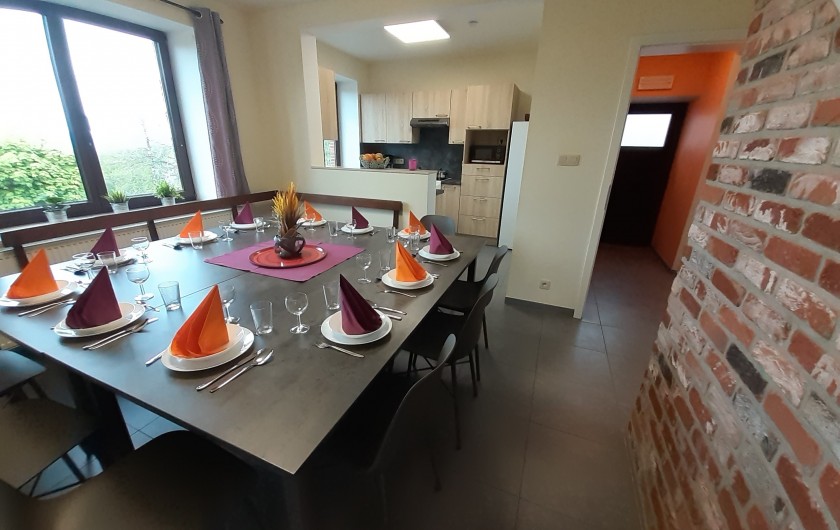 Second Gîte Lu Tchièsse du Gâtte pour 19 personnes avec vue sur la ville de Stavelot (1 km) et ses villages environnants composé d'une cuisine équipée, salle à manger, salon avec poêle à bois vitré, wifi, TV, lecteurs DVD, LV, LL, congélateur, sauna infrarouge, table de ping-pong, kicker, panier de basket, grand jardin, balançoire, barbecue, terrasse, parking privé gratuit.
