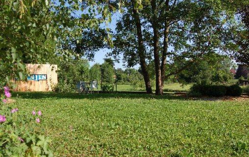 depuis le parking réservé, d’une entrée pour y disposer les bagages, d’une généreuse pièce organisée en coin salon, coin repas et coin nuit douce et double. La salle d’eau adjacente est équipée d’une douche. Un labo formant le coin préparation culinaire est équipé pour les besoins des petits séjours.L' accès direct sur une terrasse privative de 20m2 vous permet de profiter de nos prairies.