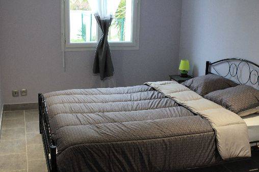 un sejour avec poele pellet,une salle de bain aves douche italienne,wc,une chambre avec 1 lit de 140/200,l autre chambre avec un lit 140/200+ lit 90/190,le tous sur terrain clos de 230 m2 ,à 200m de la plage,tennis,restaurant ,piste roller,etang .