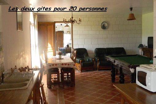 Gite à la campagne , mais aussi à 15 min de la mer, pouvant accueillir jusqu'à 20 personnes en regroupant les 2 gites qui sont jumelés, communiquant de l' intérieur , comme de l' extérieur. Séparés chacun peut accueillir 10 personnes.