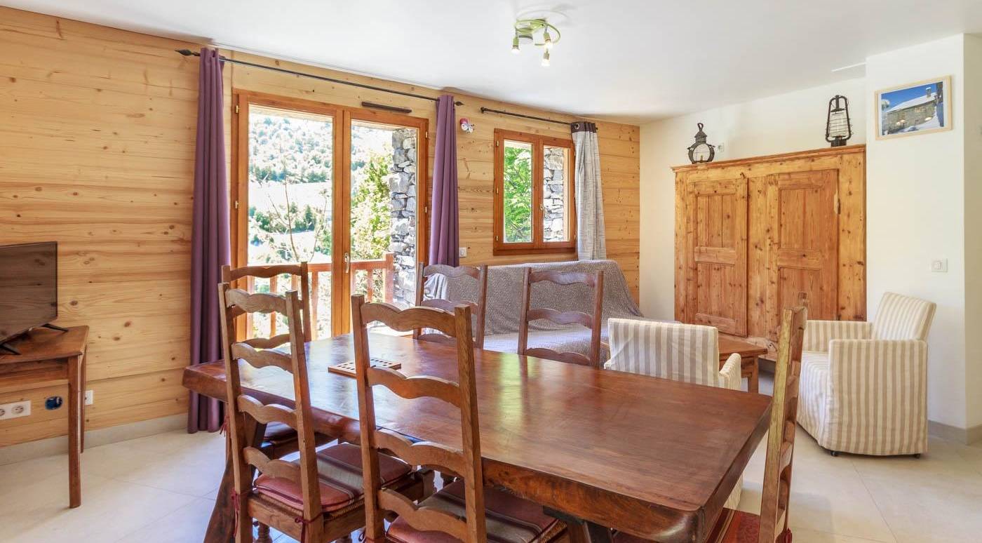 Agréable cachet montagnard. Belle vue dégagée sur le village et la montagne.