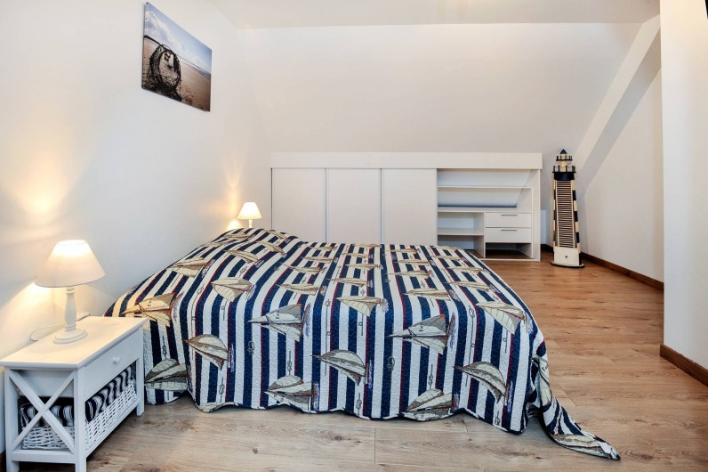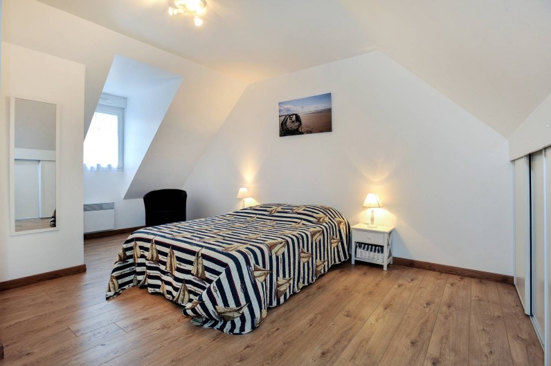 A l'étage 2 grandes chambres avec nombreux rangements : l'une avec un lit double l'autre