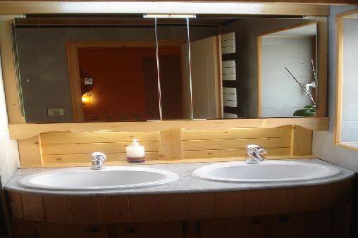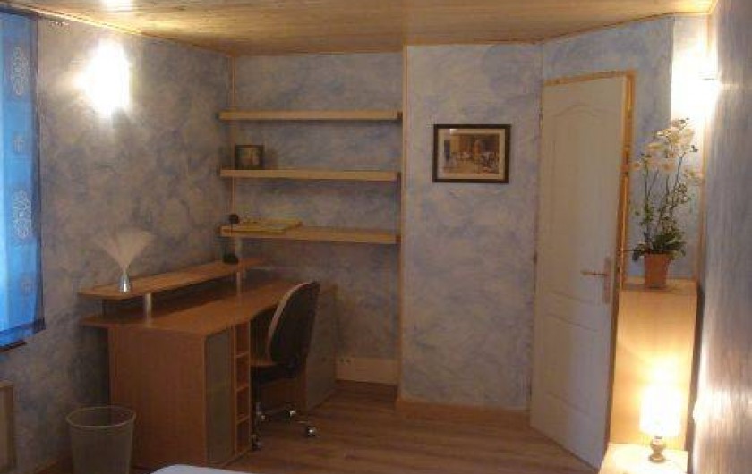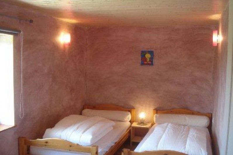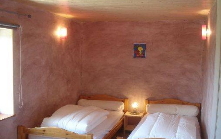 A l'étage : Une chambre avec un lit double, bureau et penderie; Une chambre avec deux lits jumeaux et un bureau; une salle de bain avec baignoire d'angle deux