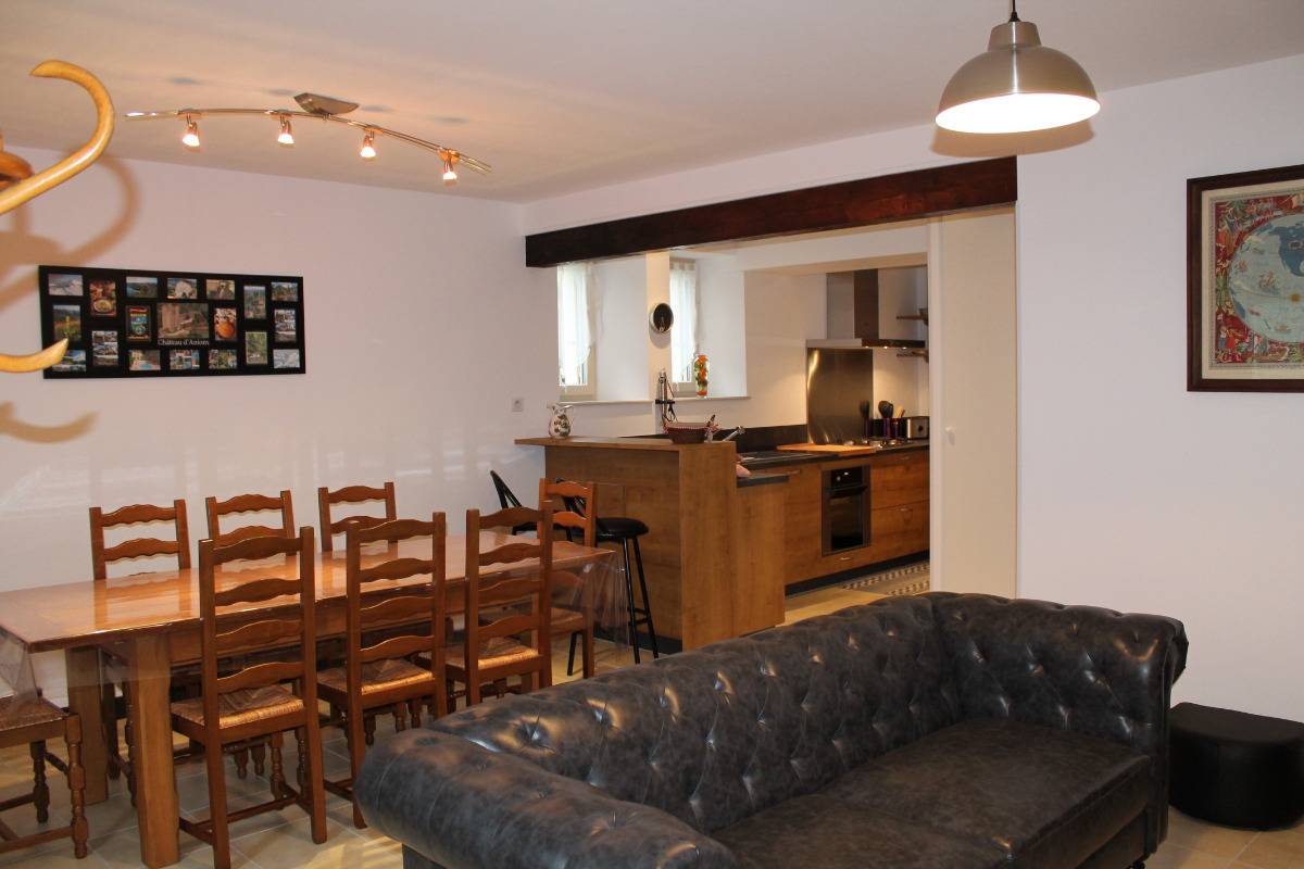 Maison mitoyenne entièrement rénovée en 2013 avec jardin et parking. Au RdC, séjour/salon avec cuisine américaine, coin buanderie et 1 WC indépendant. Au 1er étage, 3 chambres (2 lits 160 – 1 lit 140), coin bureau,1 salle d’eau avec douche,1 salle de bain, 1 WC indépendant. 2ème étage, grande chambre mansardée avec 4 lits 90 cm.